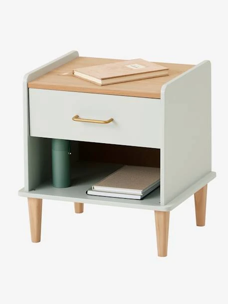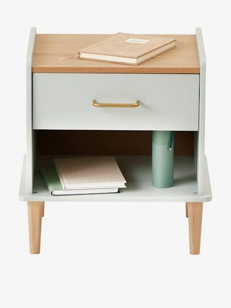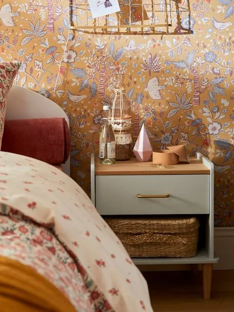 Un joli chevet aux codes sixties qui apporte une touche raffinée à la déco de chambre. Il dispose d’une niche et d’un tiroir avec poignée dorée pour ranger les livres et les affaires de votre enfant.