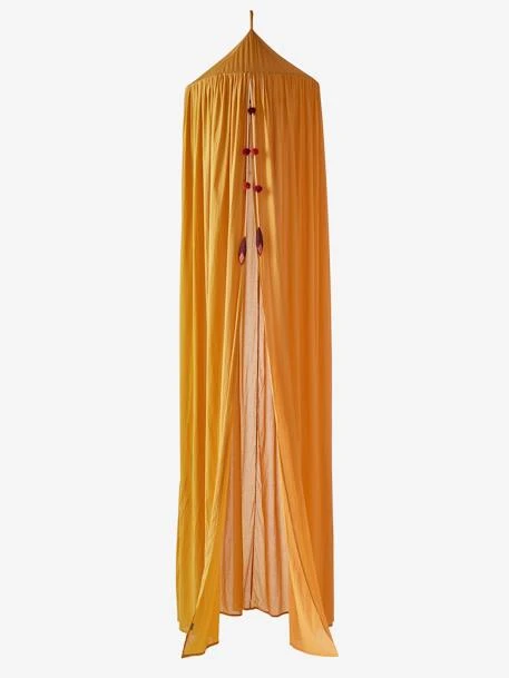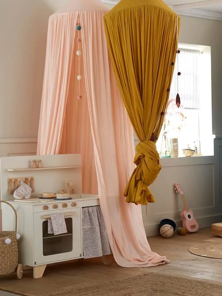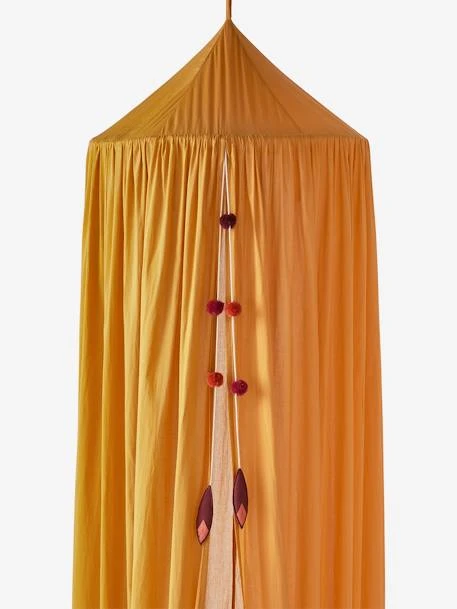 Ce magnifique ciel de lit donnera des allures de conte de fée à la chambre de votre enfant. Suspendu au dessus du lit avec sa belle couleur moutarde et une guirlande pompons à l’ouverture ; ce rideau ciel de lit apporte du rêve et de la poésie chez les petits !