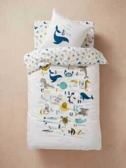 Drap-housse Enfant ABECEDAIRE MARIN Ivoire Imprimé – Vertbaudet