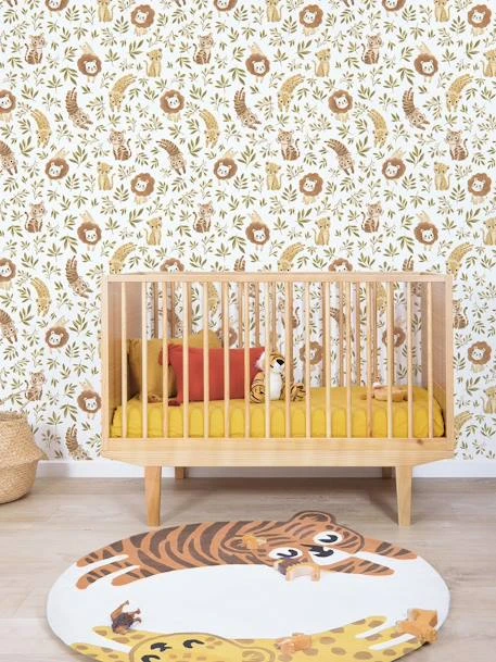 Plongez dans l’univers Felidae de Lilipinso avec ce papier peint aux couleurs chaudes et aux motifs vintages : lions, tigres et léopards se retrouvent dans la belle faune et flore de la jungle.